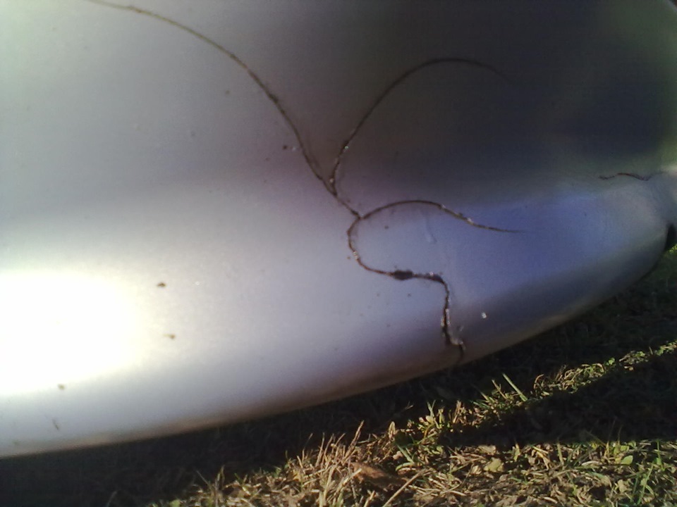 К сожалению пока нет возможности выложить фотки, постараюсь описать. На заднем бампере на горизонтальной верхней плоскости (те прямо под дверью багажника) появились длинные трещины в краске(цвет авто — белый). На сколько помню трещины почти параллельны к двери. как мне кажется,такое могло произойти,если что-то тяжелое положить на внешнюю кромку бампера, отец говорит что ничего подобного не делал и все тяжести клал только на порог багажного отделения.