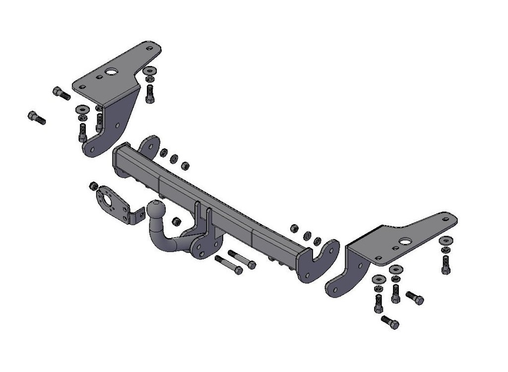 Фаркопы этого типа представляют собой сложную многоэлементную конструкцию. Их преимущество заключается в возможности использования кронштейнов с повышением или понижением. Таким