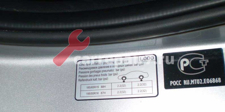 Табличка с рекомендуемым давлением зависит от производителя автомобиля. Здесь мы покажем вам пример, где вы сможете увидеть, как интерпретировать его данные:
