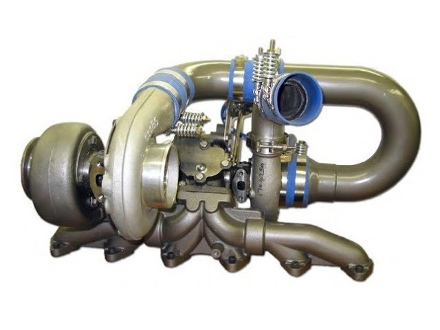 4. Регулируемый двухступенчатый турбонаддув. Эта сложная система с клапанами, которые используются для управления как потоком воздуха, так и выхлопными газами. он обеспечивает плавный переход в режим высокого ускорения с потрясающим откликом и может предложить очень высокую производительность. Эта система может быть использована с 2, 3 или более турбинами для большего эффекта. Также обычно используется с турбокомпрессорами VNT с изменяемой геометрией.