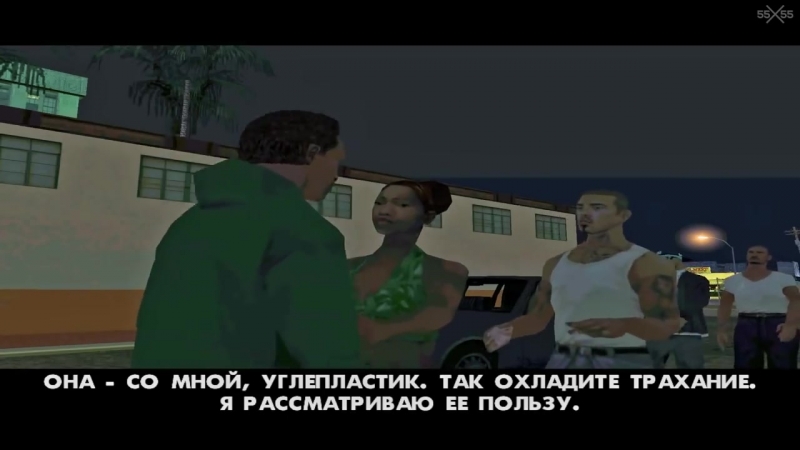 Франклин выгуливал Чопа. Он решил зайти на Грув-стрит, но вместо неё была лишь огромная чёрная дыра, из которой периодически вылетали субтитры: — ОНИ ПРОСТО КОРЧИТЬ ИЗ СЕБЯ ГАНГСТЫР! — О, ХА ХА ХА ХА! РЕБЕНОК. Я ВЕРНУЛСЯ, Я ВЕРНУЛСЯ!..55×55 – GTA 6 (feat. СЫЕНДУК)