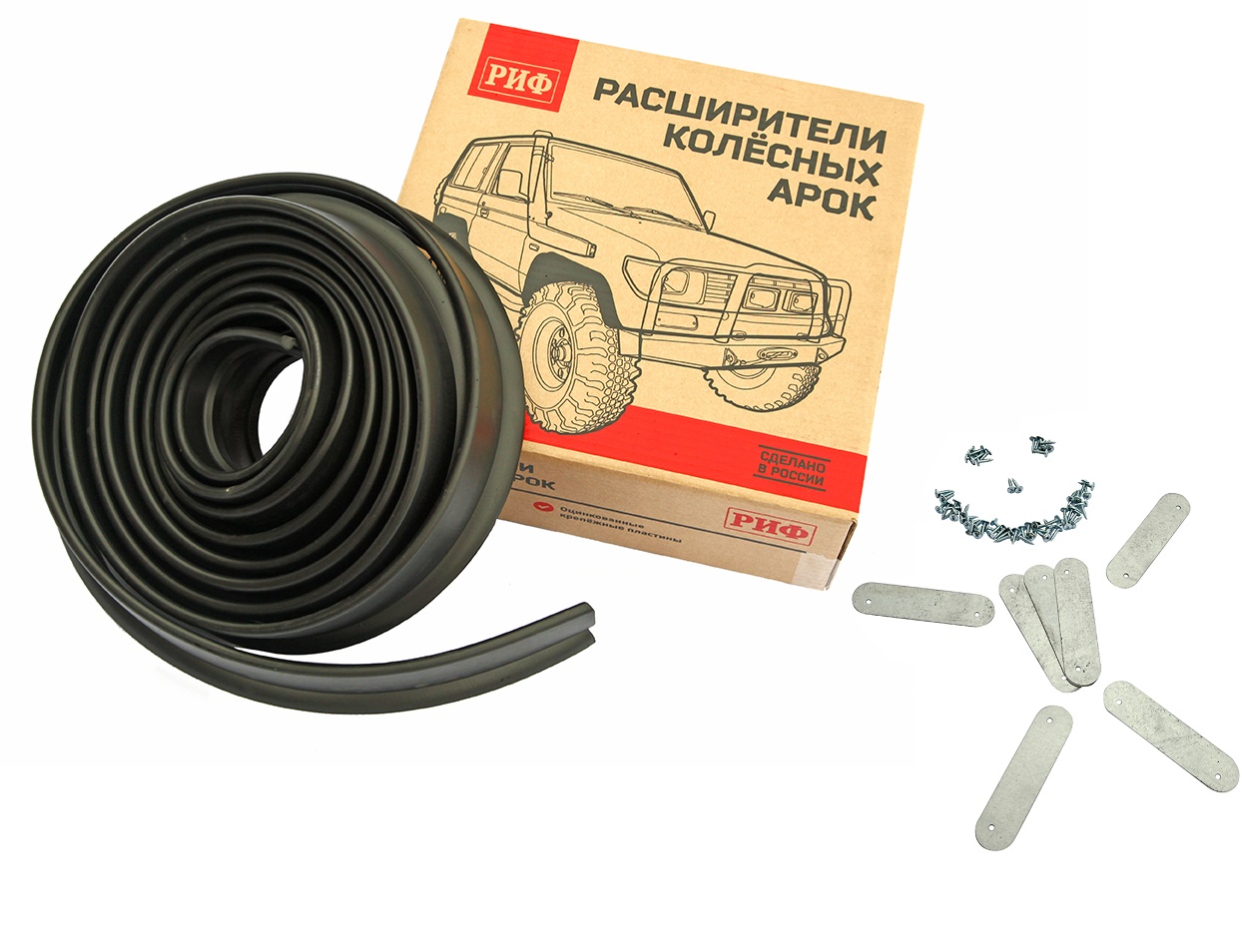 Покупая универсальные расширители арок, можно сразу же приобрести и крепежный комплект с саморезами и пластинами уже обработанными антикоррозийным средством, чтобы предотвратить появление ржавчины.