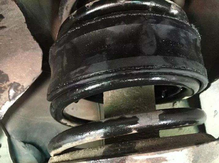- При монтаже отрежьте лишнюю часть автобаффера — т. е. тот кусок, который попадает на другой диаметр пружины. В результате должна остаться проставка идентичная диаметру пружины и не больше.
