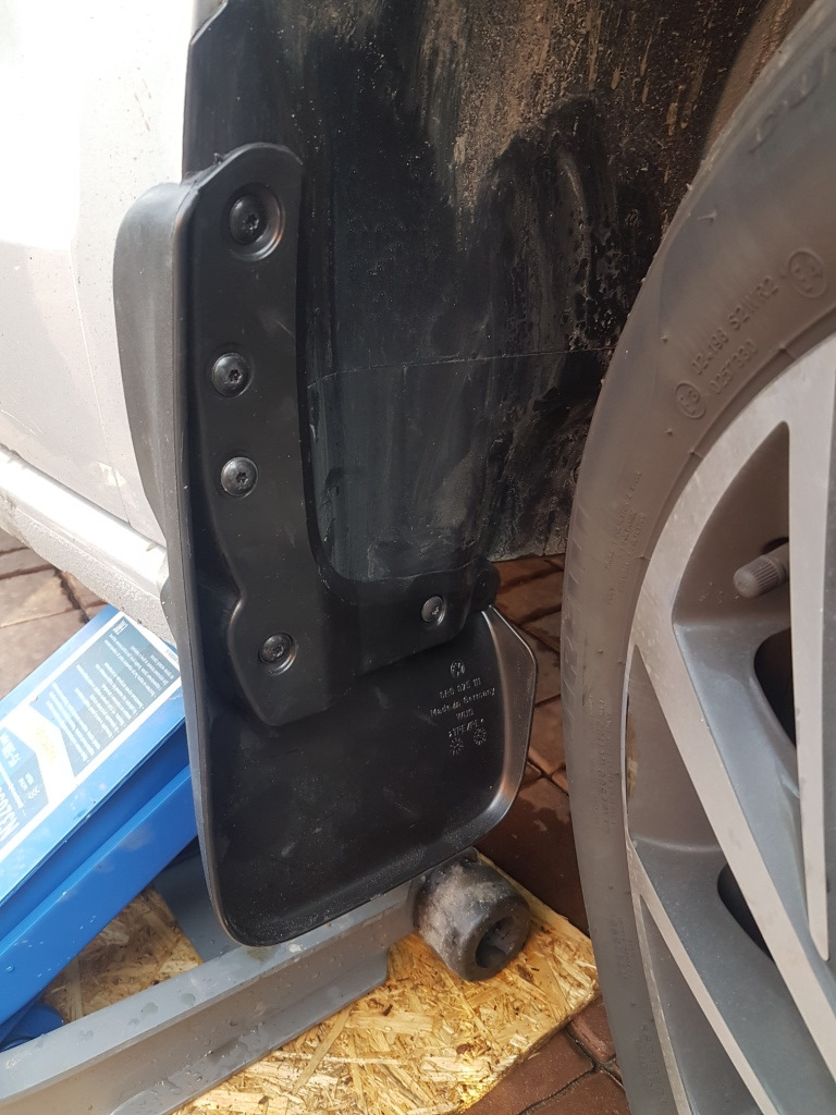 - Снимаем старые брызговики и подготавливаем всё для установки новых.