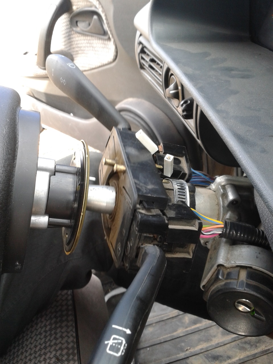 2. Отсоединить колодки с проводами от подрулевых переключателей и контактного кольца.