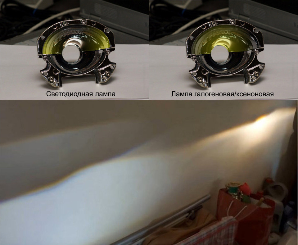 При установке в простые рефлекторы рассеянный, но все еще мощный свет неизбежно будет попадать в зону выше СТГ и слепить встречных водителей, даже если СТГ правильно установлена по высоте.