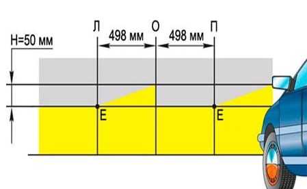 Чтобы правильно осуществить разметку стены, нужно отметить расстояние от пола до лампы и от отмеченной лампы до центра автомобиля. Затем стоит начертить на стене еще одну линию, расположенную на 5 см ниже первой. Далее отъезжаем от стены на 7,5 метров и проводим на стене горизонтальную линию, которая соединит центральные точки на обеих лампах.
