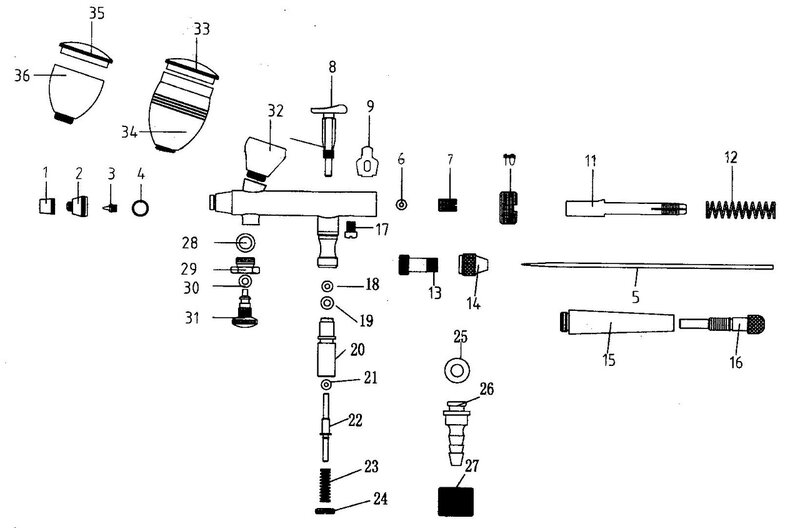 - Входящие в комплект поставки 0,2, 0,3 и 0,5 мм жидкостные наконечники позволяют использовать этот чрезвычайно универсальный аэрограф для распыления очень мелких деталей, общего распыления или для распыления фона шириной 2 дюйма.