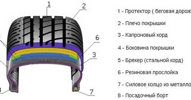 Расскажем про строение и устройство колеса автомобиля. Из чего состоит колесо и что такое шина. Чем различается радиальная шина от диагональной. Информация для начинающих автолюбителей и чайников.