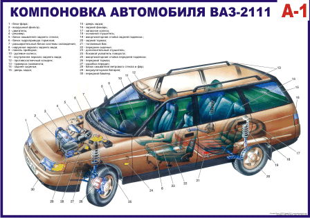 Расположение двигателя и агрегатов трансмиссии у разных моделей автомобилей неодинаково. Классическая схема размещения агрегатов и узлов представлена на рис. 1.1.