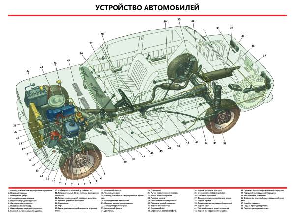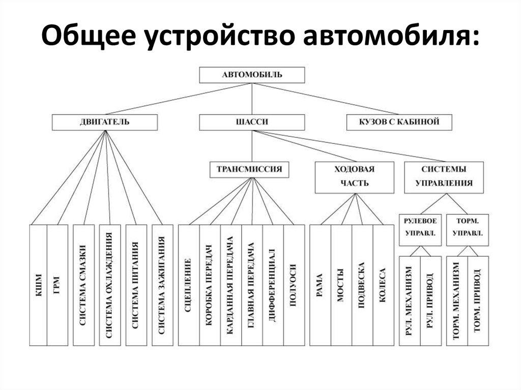Буквально через какие-то 20-30 минут изучения, вы поймете, что состав и устройство авто не такое уж и сложное. Условно устройство машины можно разделить на следующие базовые узлы: