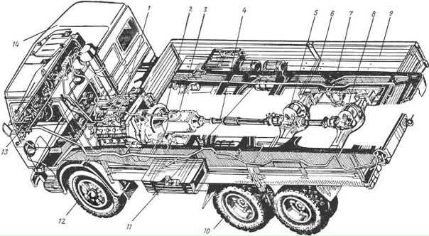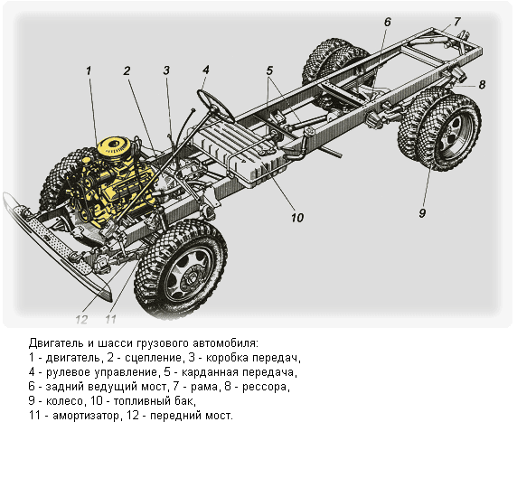 Рис. 1.1. Классическая схема размещения агрегатов и узлов автомобиля