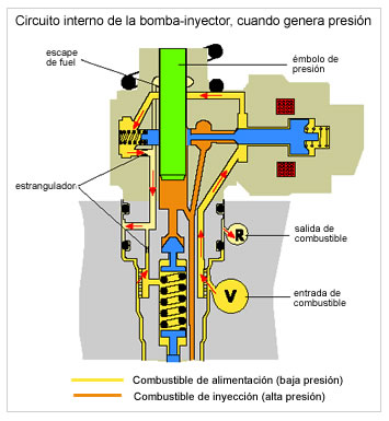 Включенные в контур низкого давления электронасос и шестеренный насос обеспечивают подачу топлива из бака через компенсационный бачок и фильтр к насосу высокого давления. Этот насос подает топливо в аккумулятор (Rail) под высоким давлением, необходимым для впрыска топлива. Из аккумулятора высокого давления топливо поступает к форсункам, через которые оно впрыскивается в камеры сгорания двигателя.