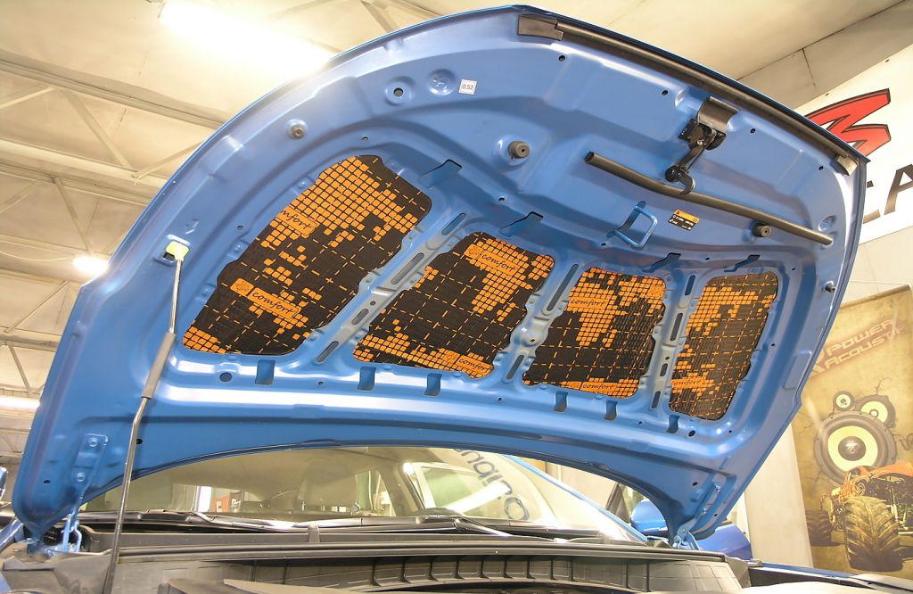 Кроме того, Dynamat делает что-то под капотом . Он может резонировать с шумом двигателя и выдерживать высокую температуру!