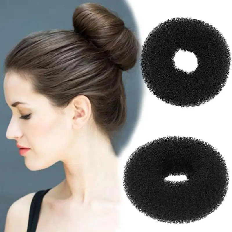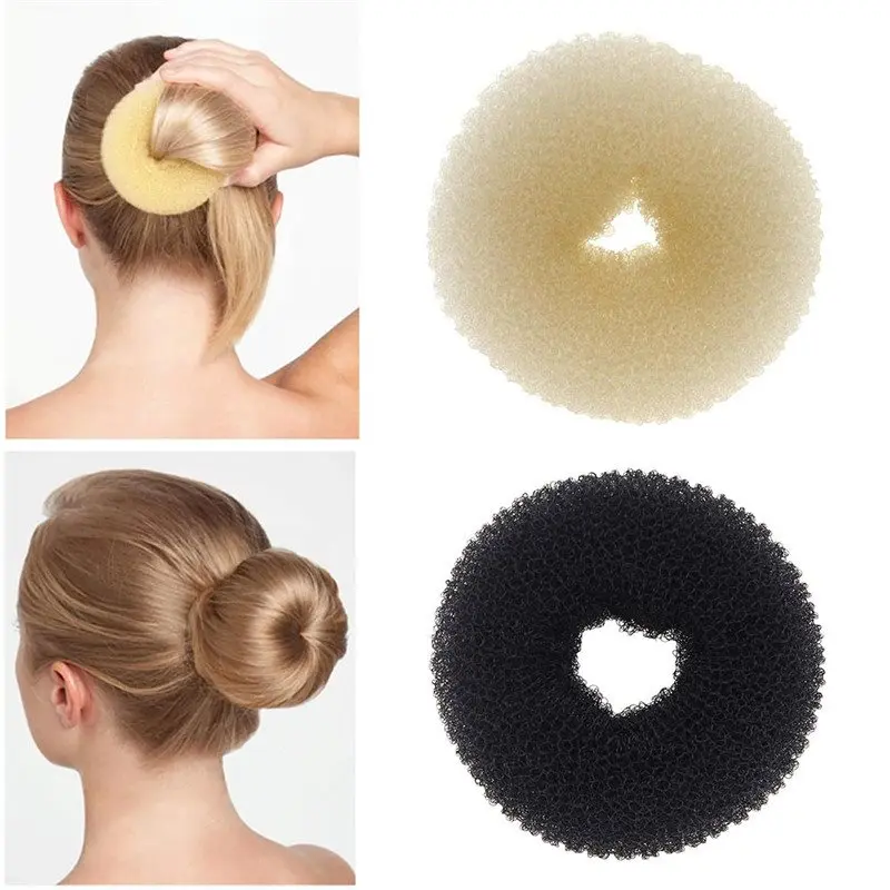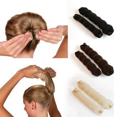 Круглый валик для волос он же пончик, бубликНапоминает круглая заколка – пончик или бублик. Используется при создании пучков различных по высоте. От её размера зависит величина готовой гульки. Валик надевают на хвост, затем оборачивают прядями и закрепляют свободные концы вовнутрь.