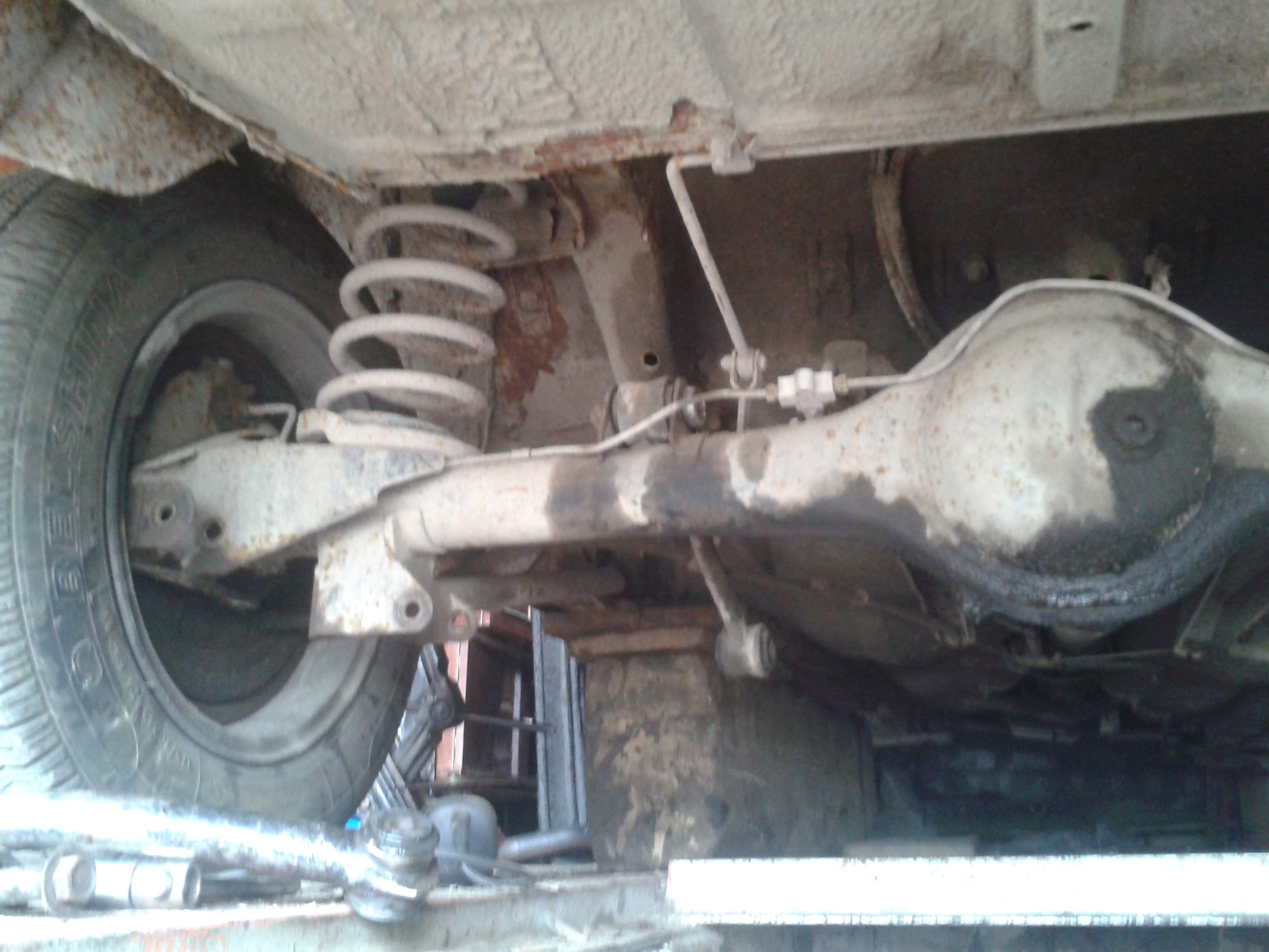 Колеса — диск ободные 5J-13. Крепление на 4 болта. Шины 165R 13 или 175 / 70R13.Давление в шинах 165R13: перед — 1.6. сзади — 1,9 кгс / см. То же в шинах 175 / 70R13: спереди — 1,7, сзади — 2,0 кгс / см. Количество колес 4 + 1. Подвеска.