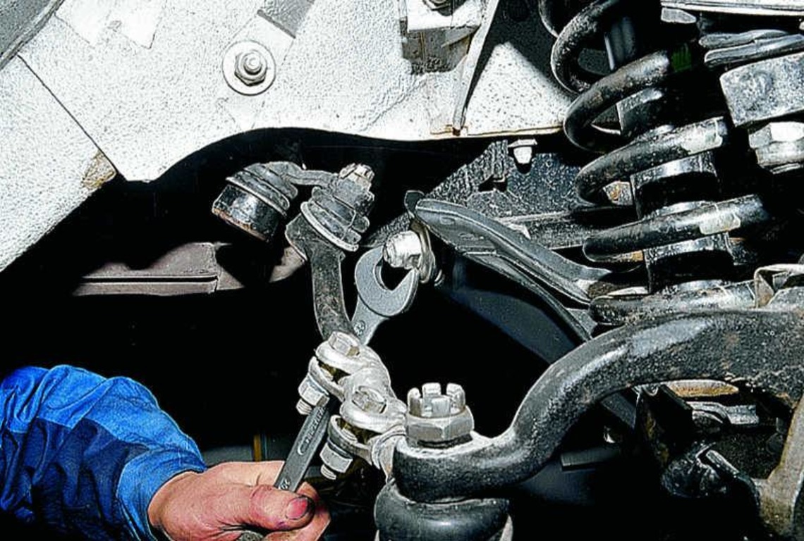 Для замены шаровых опор необходим стандартный набор ключей, молоток и домкрат. Для начала нужно вывесить переднее колесо и снять его со ступицы. Затем «разгрузив» подвеску, с помощью гаечного ключа «на 22» открутить гайку верхней или нижней опоры и ударами молотка по выступу поворотного кулака освободить шаровую из посадочного места.