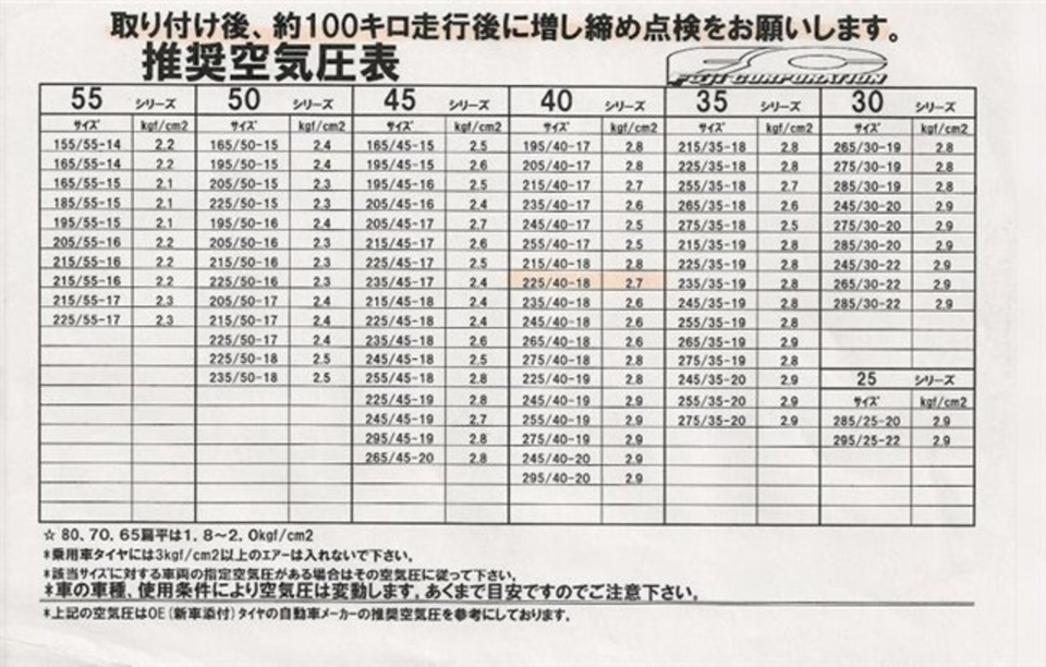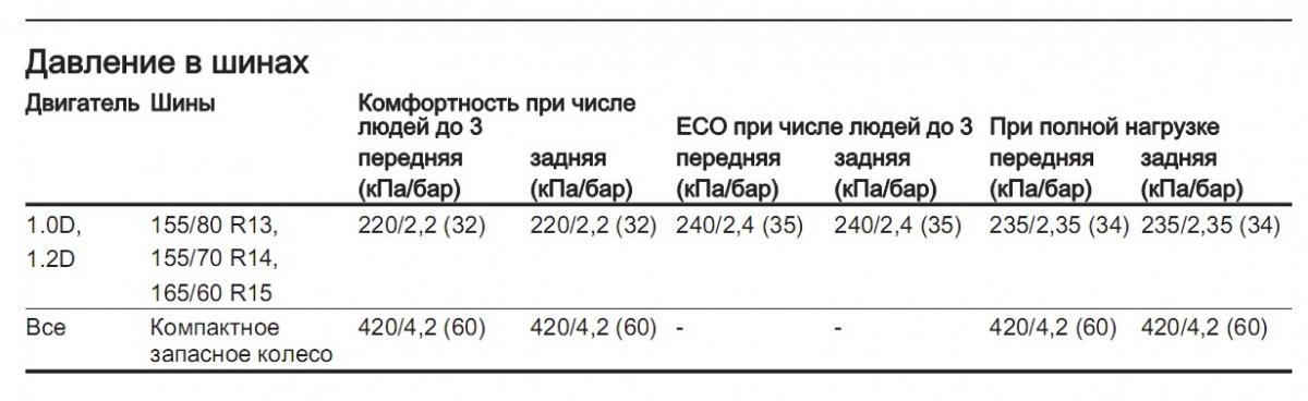 Таблица показателей давления в шинах автомобиля
