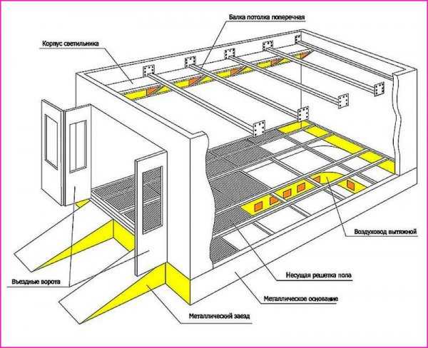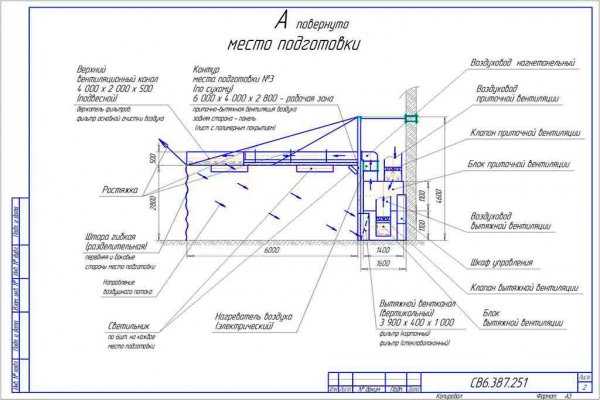 Схема вентиляции в покрасочном боксеЭто специализированное помещение, в котором выполняется два вида работ:
