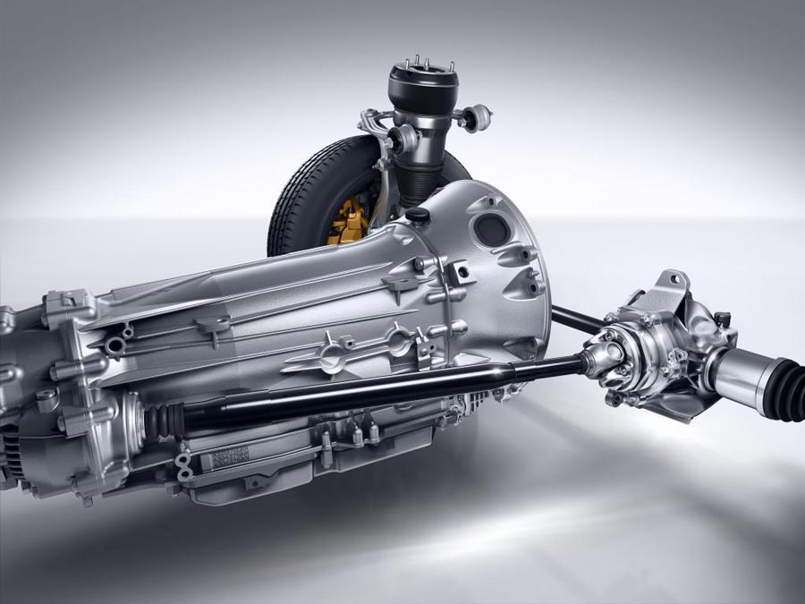 Компоненты трансмиссии включают преобразователь крутящего момента, сцепление, маховик, трансмиссию, карданный вал, мосты, раздаточную коробку и дифференциалы, где это применимо.