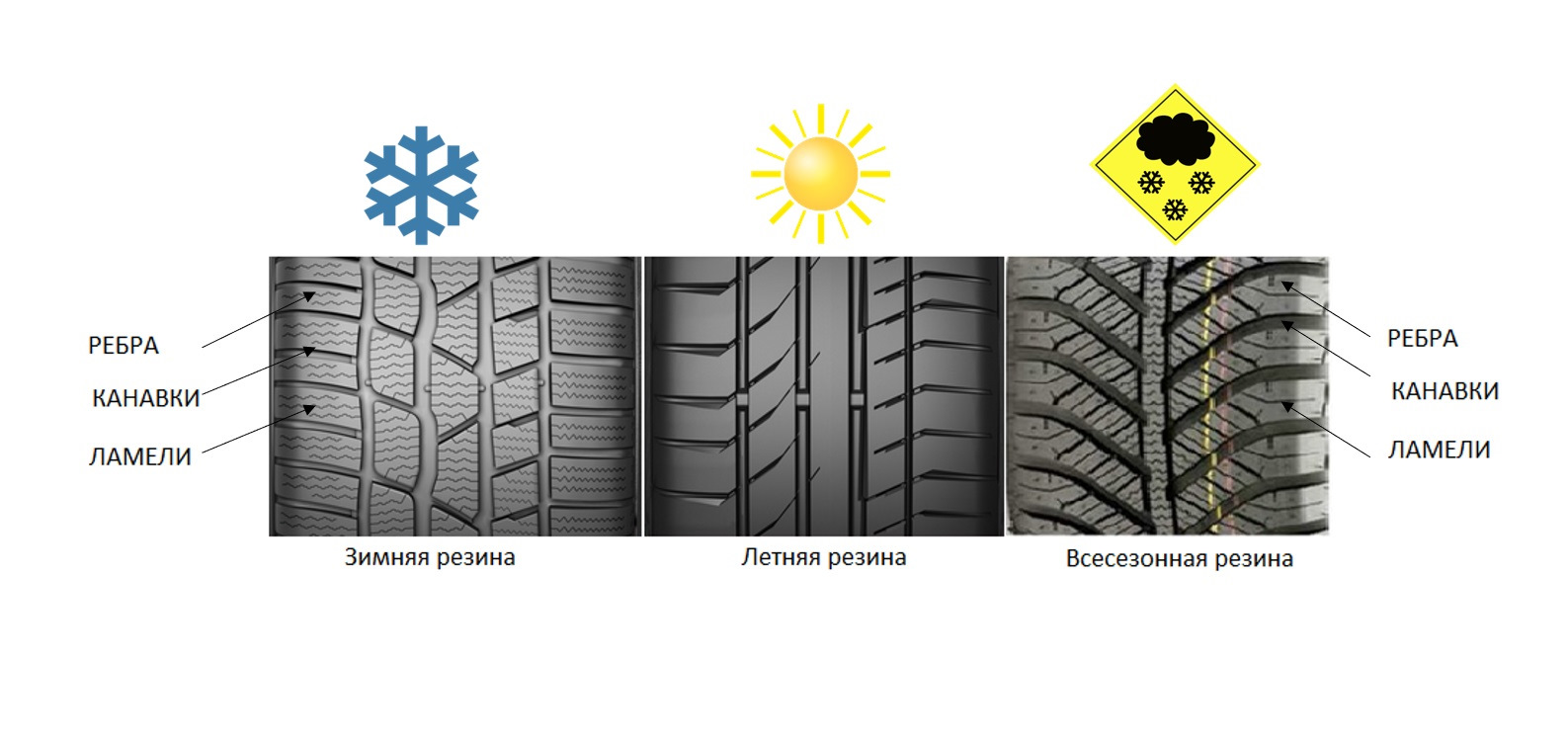 Шины, они же покрышки, бывают летними, зимними и всесезонными.