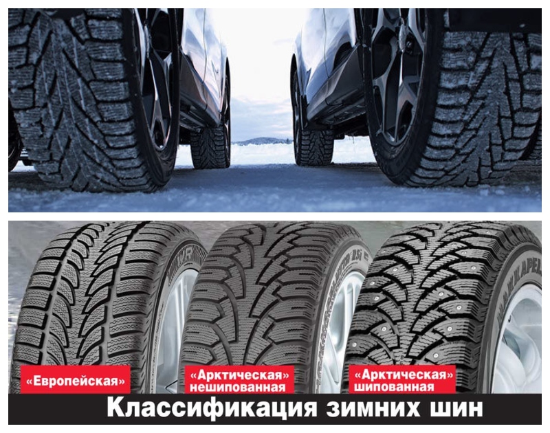 В большинстве классификаций выделяют два типа зимних шин, созданных в соответствующих климатических условиях: