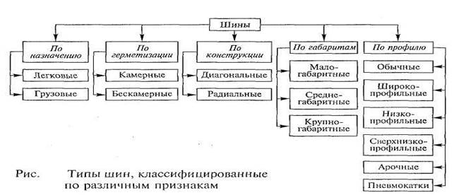 Виды и типы автомобильных шин и их характеристика.