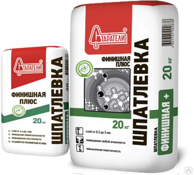 • финишные — применяются для финишной отделки поверхностей или нанесения второго слоя, для заделки мелких трещин и неровностей, образуют слой , толщина которого не превышает 1 мм. Имеют мелкодисперсный или тонкодисперсный состав. Рекомендуется их применение под такие отделочные материалы, как краски, флоковые покрытия, текстильные обои. Нанесение может происходить в несколько этапов, в результате образуется безупречно гладкая поверхность;