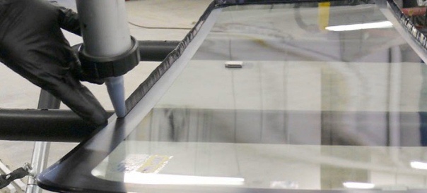 На обработанную соответствующим образом рамку кузова наносится клей, после чего стекло устанавливается в проем и фиксируется скотчем.