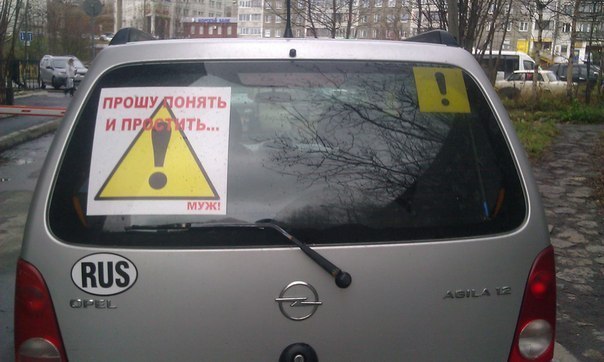 Например, «туфелька», — этим знаком обожают «украшать» свои машины дамы. Наклейка с изображением малыша, то есть обозначение того, что в машине может находиться ребенок, тоже ни к чему. При соблюдении ПДД малышу и так ничего не угрожает. Если к этим картинкам добавить еще и, обычные для таких ситуаций, «Начинающий водитель» и какого-нибудь котика, то получается практически полностью закрытый низ заднего стекла. А это уменьшение обзора почти на 30 процентов. Совсем немало для того, кто пока еще не очень уверен в своих навыках.