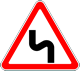 Предупреждают о приближении к участку дороги с двумя опасными поворотами, следующими друг за другом. Водитель должен помнить, что на таких участках запрещены такие манёвры как обгон, разворот и движение задним ходом. Водитель обязан снизить скорость, оценить ситуацию. Устанавливаются в населённом пункте за 50—100 м, вне населённых пунктов за 150—300 м до начала опасного участка. |