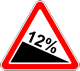 Цифрами указывается уклон в сотых долях. Особенности:В случае затруднённого встречного разъезда уступить дорогу должен водитель, движущийся на спуск. Знаки 1.13 и 1.14 могут устанавливаться без таблички |