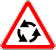 Предупреждает о приближении к круговому перекрёстку. Движение в кольце идёт против часовой стрелки. Водителю рекомендуется снизить скорость, оценить ситуацию. Устанавливаются в населённом пункте за 50—100 м, вне населённых пунктов за 150—300 м до начала опасного участка. |