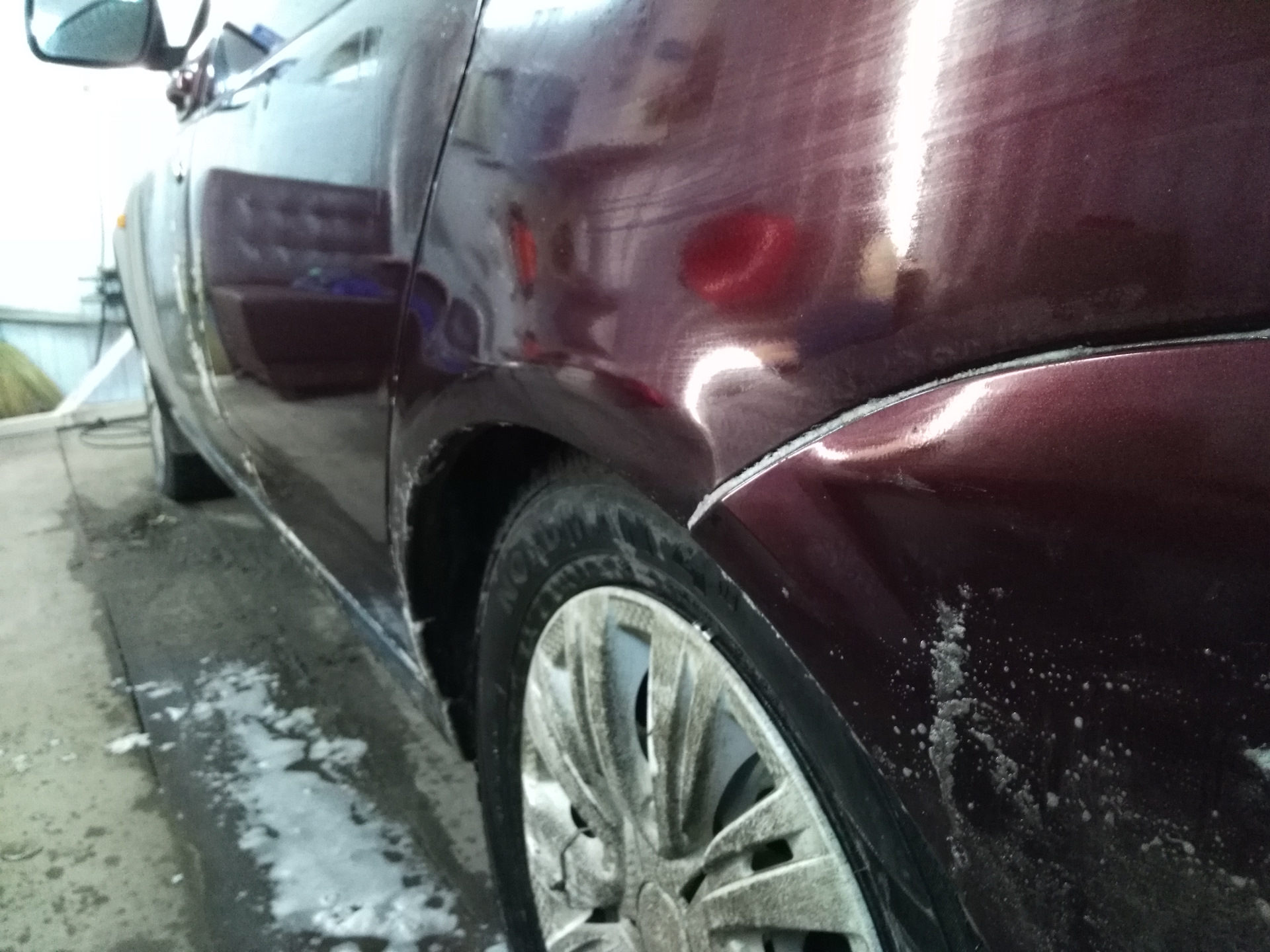 - Зачищаем повреждение наждачной бумагой.
