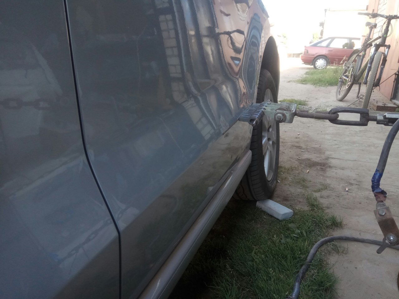 4. начинаем крутить гайку – при этом вмятина вытягивается. Останавливаемся, когда услышим звук/хлопок (может и не быть).