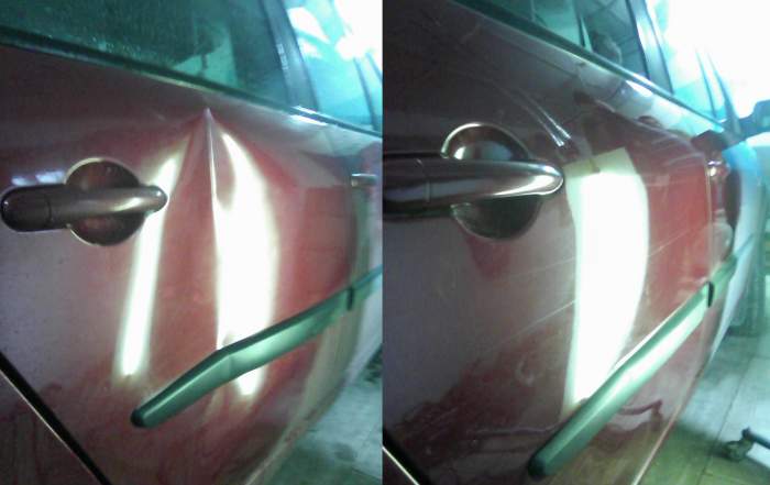 Выправление вмятин без покраски от ударов ногами