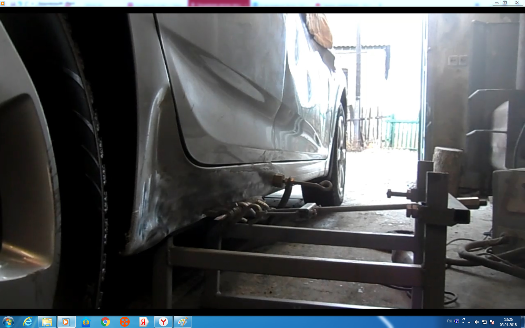 Таким способом нельзя выправить любой повреждённый порог, но вполне можно уменьшить или полностью выправить плавную вмятину, образованную при не сильном ударе. Ещё раз повторю, что с одного раза может не получиться уменьшить вмятину. Нужно следить за изменениями и если вмятина немного уменьшилась, то нужно медленно повторять процесс вытягивания.