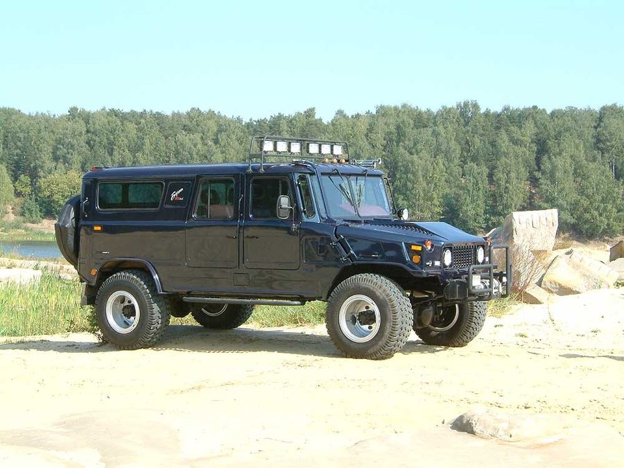 «Три года назад был на ужине у одного знакомого, там собрались гости, говорили на разные темы. Мужчины заговорили о машинах, и тут кто-то сказал, что в каком-то регионе России ребята из ГАЗ-66 собрали «Хаммер по-русски». Я это взял на заметку, стал задумываться на эту тему. Зашел в интернет, почитал-посмотрел. Обдумывал идею полгода. И взялся за это дело. Привез ГАЗ-66. Это военная машина, сейчас их не выпускают. Разобрал ее, заменил нужные детали и собрал», – рассказывает Рафик Хадиев.