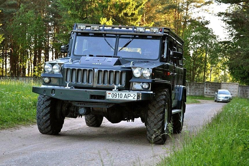 В ход пошли части старых автомобилей, военной техники и даже комбайна. Сабинский «Хаммер» носит патриотичное название – крупная надпись SABA красуется на решетке радиатора.
