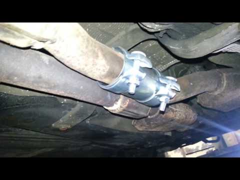 Для выполнения такого рода работ вам понадобится цепной резак для выхлопных труб, запасная секция выхлопной трубы, которая подходит или может быть обрезана до рабочей длины, а также несколько зажимов глушителя с U-образными болтами. Возможно, вам придется использовать расширитель, чтобы расширить сменную трубу с одного конца, чтобы она подходила к ремонтируемой трубе.