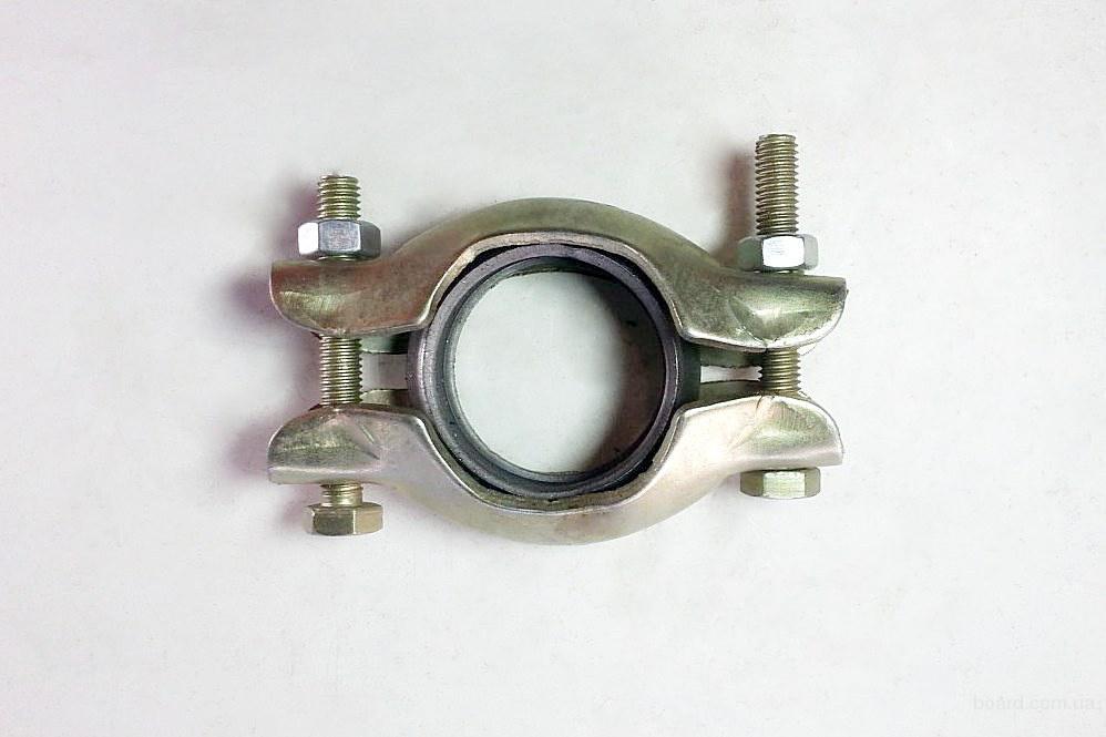 Обычный U-образный хомут глушителя, предназначенный для плотного соединения на удлинителе глушителя. То, что называется хомутом в стиле GM, с твердыми сторонами в нижней части, иногда обеспечивает еще более прочное соединение.