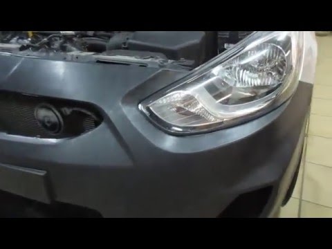 Диагностика и замена переднего бампера Хендай Солярис