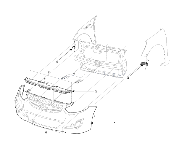 Замена начинается с последовательного отвинчивания крепежей в верхней части. После чего бампер срывается со штатных фиксаторов, отключаются две контактные клеммы передней оптики. Устанавливается новый бампер, процедура сборки проводится в обратном порядке.