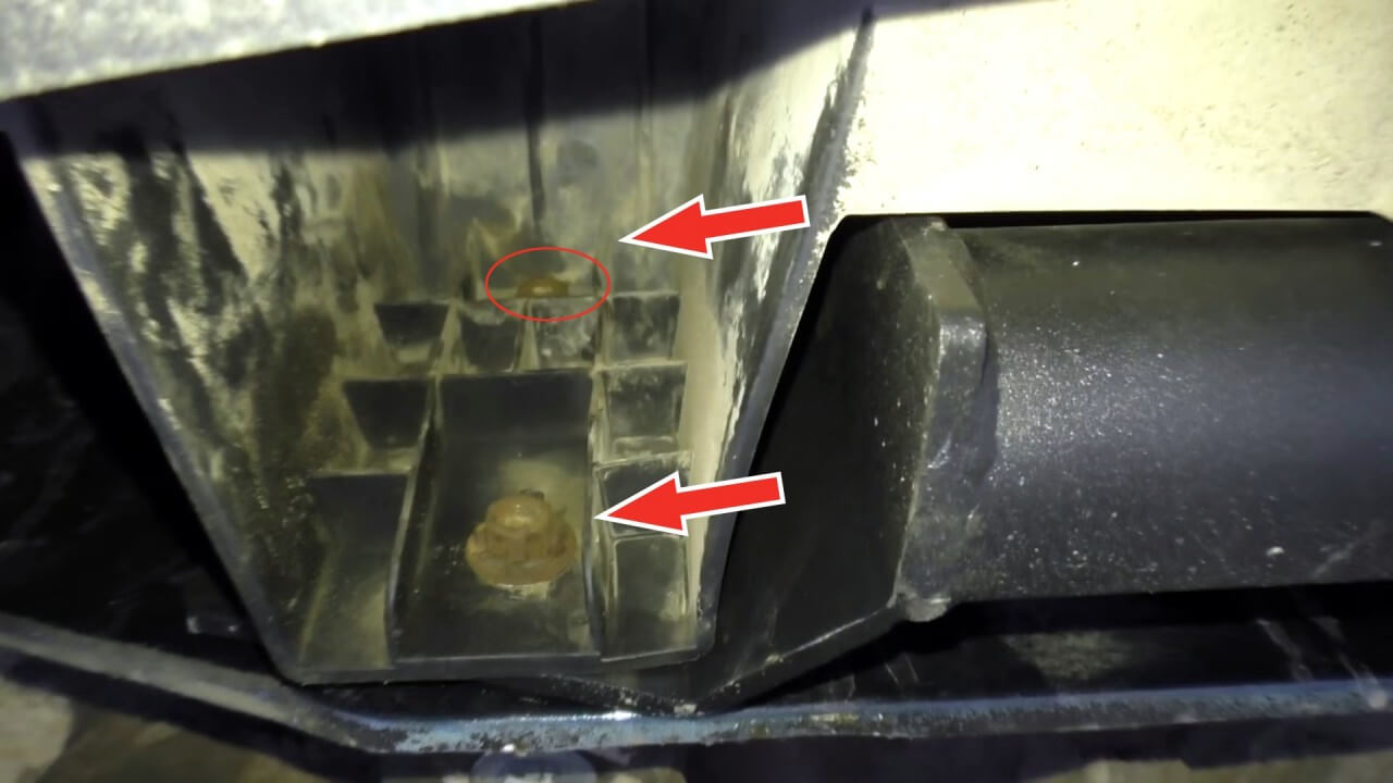Следующим этапом залазием под бампер и видим еще 4 болта под крестовую отвертку.