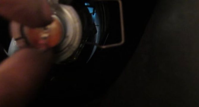 Снимаем резиновый пыльник с внутренней части фары и видим саму лампу