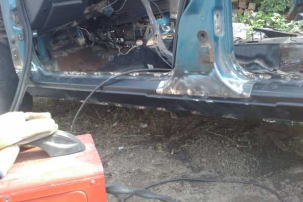 Ремонт силового каркаса обычно довольно длительный процесс, который проводится в электрифицированном гаражном боксе. Машина устанавливается на смотровой яме или подъемнике. Замена коррозировавших порогов осуществляется в такой последовательности: