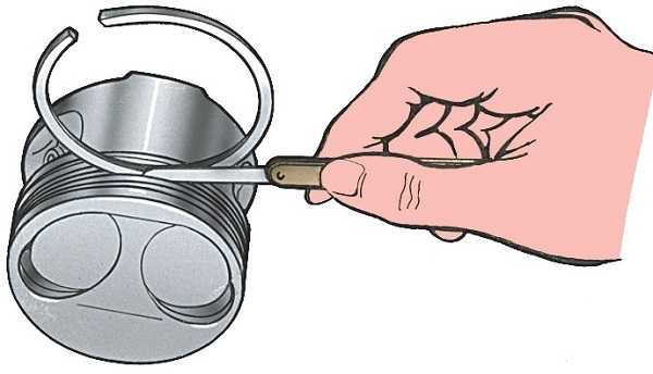 Разжимаем пальцами зазор - После снятия все детали нужно промыть керосином, а канавки тщательно вычистить. Поверхности все нужно протереть и проверить на наличие дефектов: царапин и трещин.