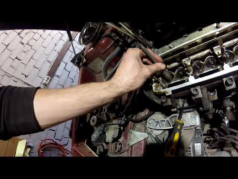 Снимаем ремень ГРМ, шкивы распредвалов и помпу.