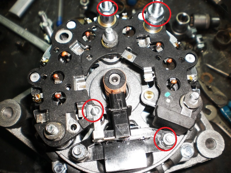 Отвинтите винт и снимите блок выпрямителей.