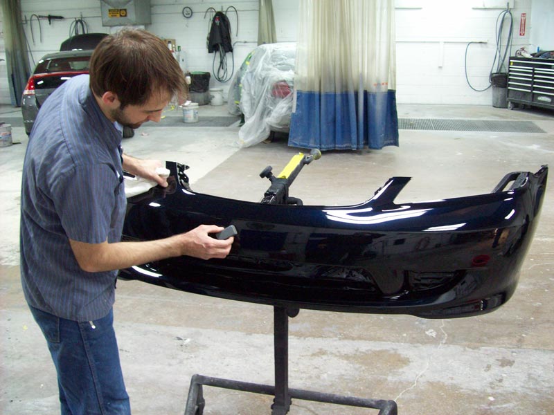 Затем идет краска в необходимом количестве слоев, лак и полировка. Здесь главное подобрать краску под цвет бампера, чтобы он не выделялся, и не были заметны следы ремонта.